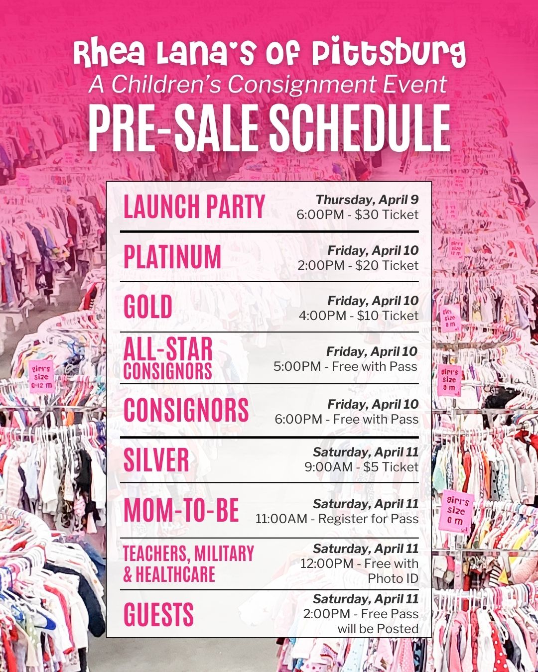 Rhea Lana's of Pittsburg will have over 250 families selling thousands of gently used, HIGH-QUALITY children's clothes, shoes, toys, books, DVDs, baby equipment, gently used maternity clothes, and much much more at affordable prices. Our events are open to the public ONE WEEK only!